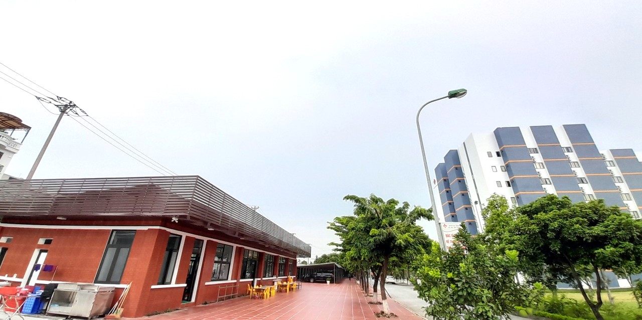 Hệ thống đèn chiếu sáng được lắp đặt tại khu nhà ăn dành cho bệnh nhân và người thân bệnh nhân tại Bệnh viện Hà Nội Bắc Giang (Ảnh: HTK Lights)
