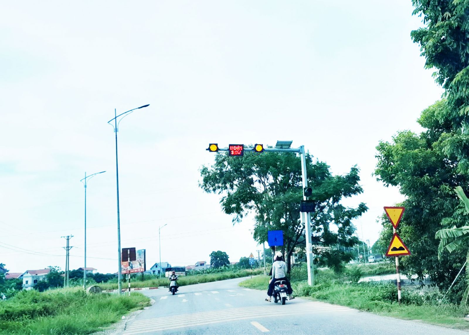 Hệ thống đèn cảnh báo, đèn giao thông được Công ty TNHH Thiết bị Công nhệ & Xây dựng Đức Phát (HTK Lights) thực hiện tại đường Tân An ( Yên Dũng- TP Bắc Giang) đã đem lại tiện ích lớn đối với người tham gia giao thông. ( Ảnh: HTK Lights)